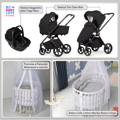 Kit Nascita con Venicci Trio Claro Noir e Cloud Tiago + Bebex Culla Lettino Marilyn Sabbia (Noir - Sabbia)
