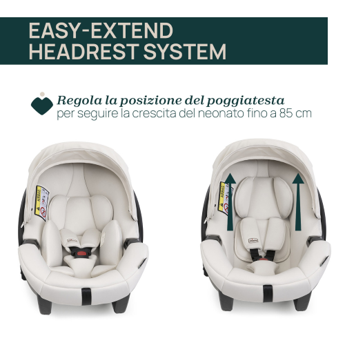 La culla Gran Comfort offre uno schienale interno regolabile che facilita la digestione, aiuta il bambino in caso di congestione nasale e favorisce gli stimoli visivi. Capottina estensibile dotata di protezione UV50+ e trattamento idrorepellente.