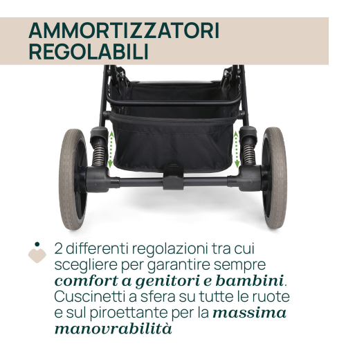 Dolomiti, il passeggino leggero perfetto per affrontare ogni sfida, dalle strade cittadine ai percorsi off-road.Grandi ruote in gomma e sospensioni regolabili per una guida agile e fluida su tutti i terreni.