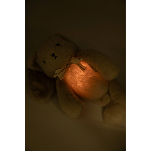 Il coniglietto è un peluche morbido e rassicurante che accompagna il sonno del bebè con luci soffuse e suoni rilassanti. Perfetto per creare un’atmosfera tranquilla nella cameretta, avvolge il piccolo in un dolce abbraccio, sia durante il pisolino che la nanna della notte.Caratteristiche principali