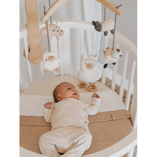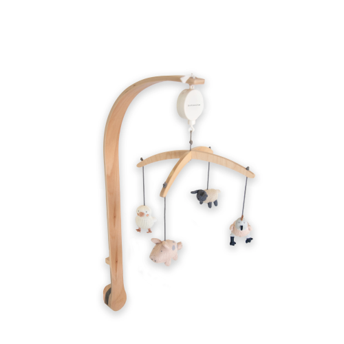 Un complemento d’arredo tenero e funzionale, perfetto per accompagnare i primi momenti di riposo e scoperta del tuo bambino. La giostrina The Farm è realizzata con una struttura in legno curvato dal design pulito ed essenziale, che si adatta con armonia a qualsiasi cameretta.I piccoli animaletti in maglia, ispirati al mondo della fattoria, si muovono dolcemente per catturare l’attenzione del neonato, stimolando la vista e accompagnandolo con un movimento rilassante.