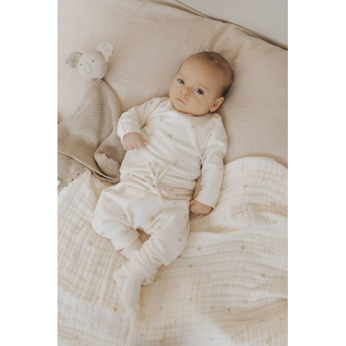 Il tessuto realizzato a partire dal bambł organico permette alla pelle del bambino di respirare, senza far sudare o scaldare eccessivamente il piedino del piccolo.