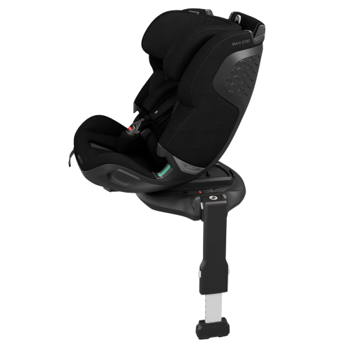 Emerald 360 Pro è dotato di una base ISOFIX integrata con rotazione a 360° e indicatori visivi per un'installazione corretta e sicura, e piede di supporto per una maggiore stabilità.