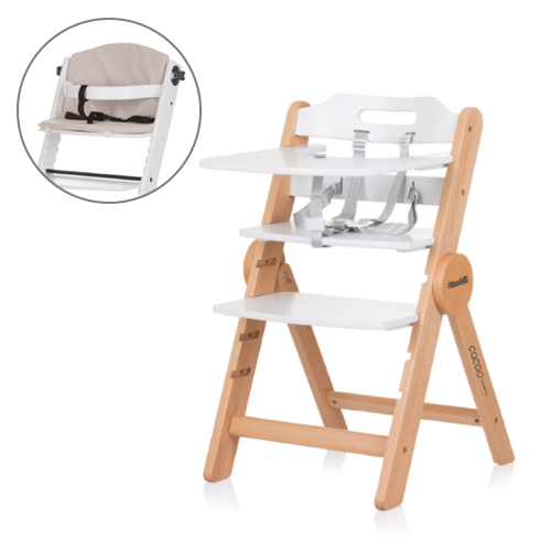 Chipolino Seggiolone Pappa in legno Cacao White Wood con Kit tessile