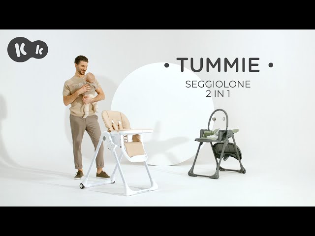 TUMMIE è adatto per i bambini già dalla nascita – grazie alla funzione sdraietta, il piccolino potrà essere vicino a voi già dai primi giorni e potrete iniziare l’ampliamento della dieta quando avrà raggiunto 4 mesi. Basta regolare lo schienale e il poggiapiedi e sostituire la barra dei giochi con il vassoio per trasformare TUMMIE dalla sdraietta in seggiolone da pappa e al contrario.