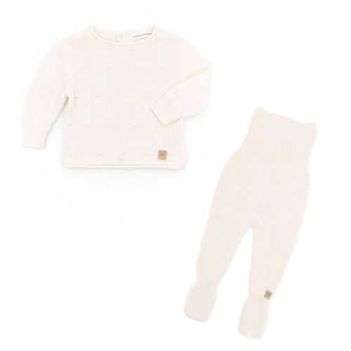 Pantalone neonato in maglia della linea Knitted con piedini, ideale per completare i primi outfit con comfort e protezione fin dai primi giorni
